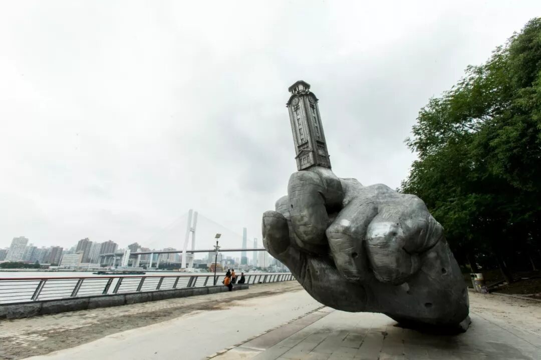 雕塑“超戒”借用了上海美術館鐘樓,
