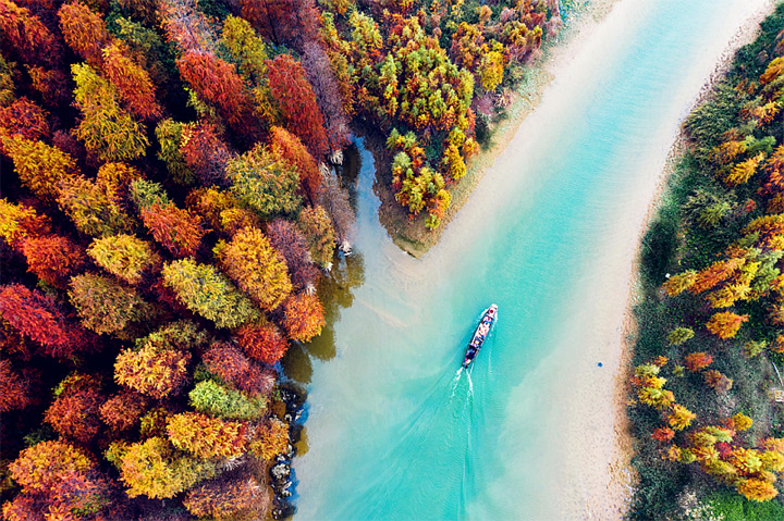 秋日水鄉,水清林秀。圖/王慶武