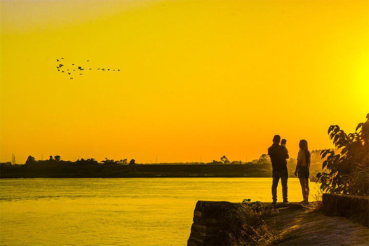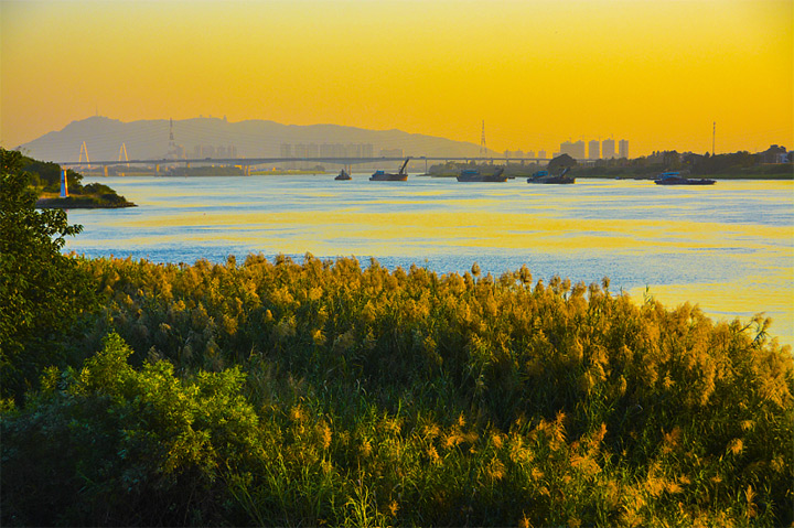 夕陽下的北江,仿佛被植物染黃。圖/容鑄華