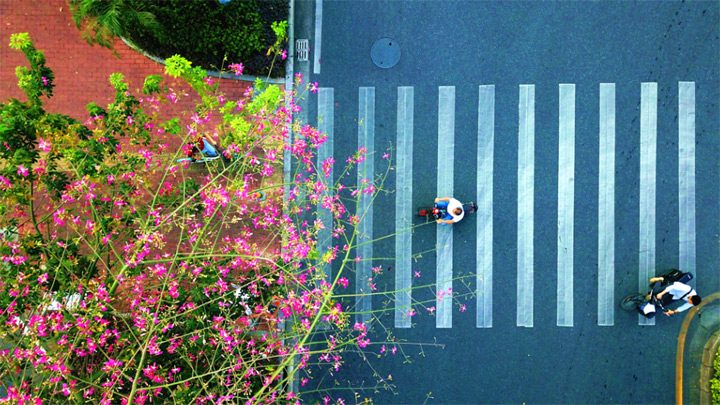 花下騎行,清新宜人。圖/張斯特