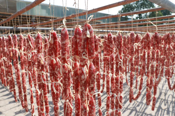 新鮮製作的臘腸。圖/佛山新聞網