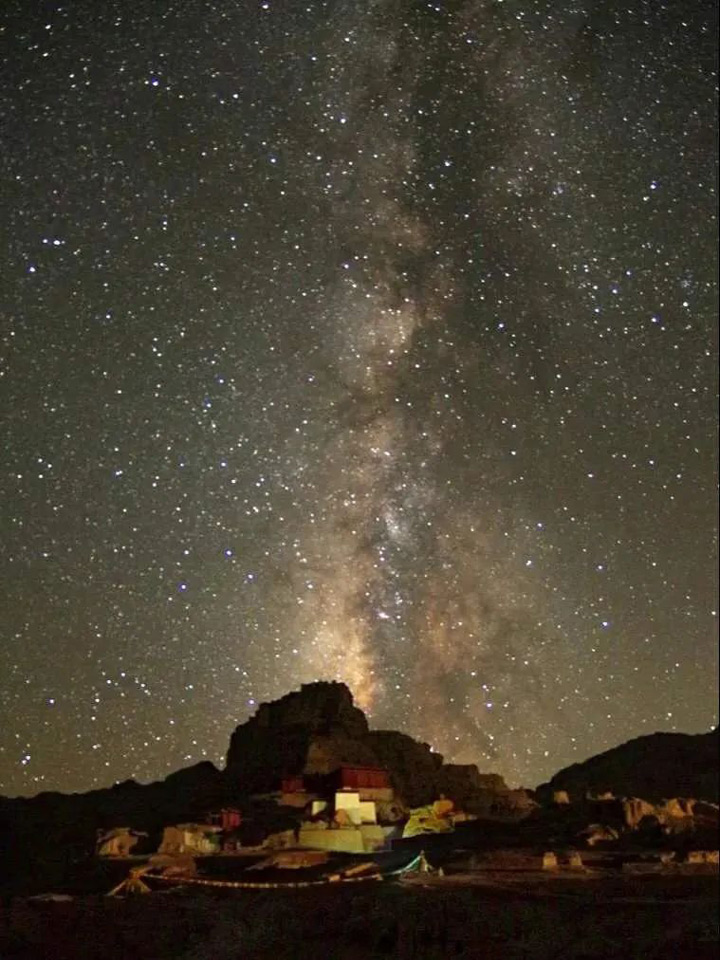 那些星星點點的光,是幾百光年的光,它們“跋涉”而至,也許星光能告訴我們古格王朝的滄海桑田,而此刻銀河與古格王朝遺址的同框是如此壯麗,銀河照亮了古格王朝的燦爛文明,而古格王朝的光亮閃耀在我眼裡。