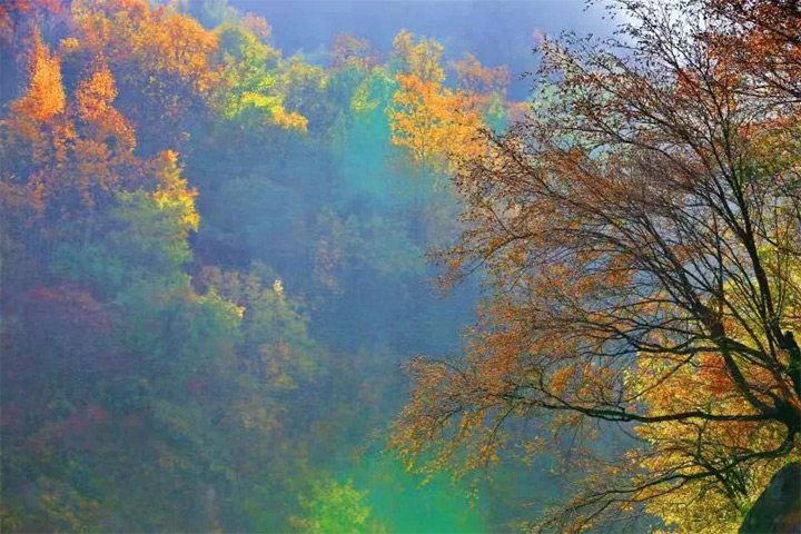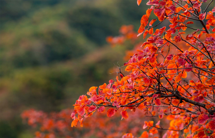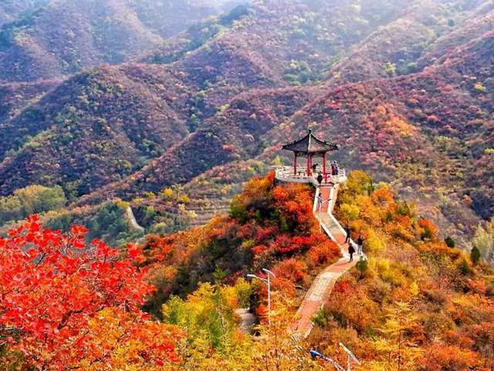 最常見的絢麗赤紅的黃櫨、元寶楓和金燦燦的銀杏、紅黃相間的火炬樹、深棕色的銀紅槭、深紅色的黃連木等共同組成了一幅色彩斑斕、疊翠流金的“紅葉山水”畫,吸引大批遊人前來觀賞。