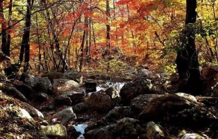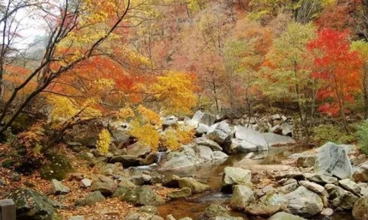 秋日間,這裡滿山豔麗,到處是赤紅的楓葉、金黃的白樺、天柏、胡柞,掛滿枝頭的野果子和瀑布谷壑的野菊,十分唯美。