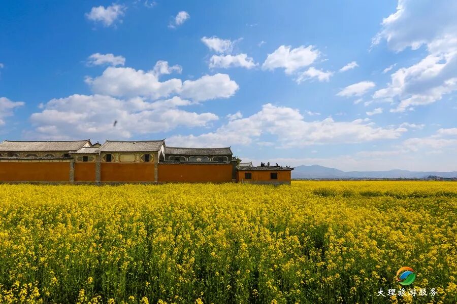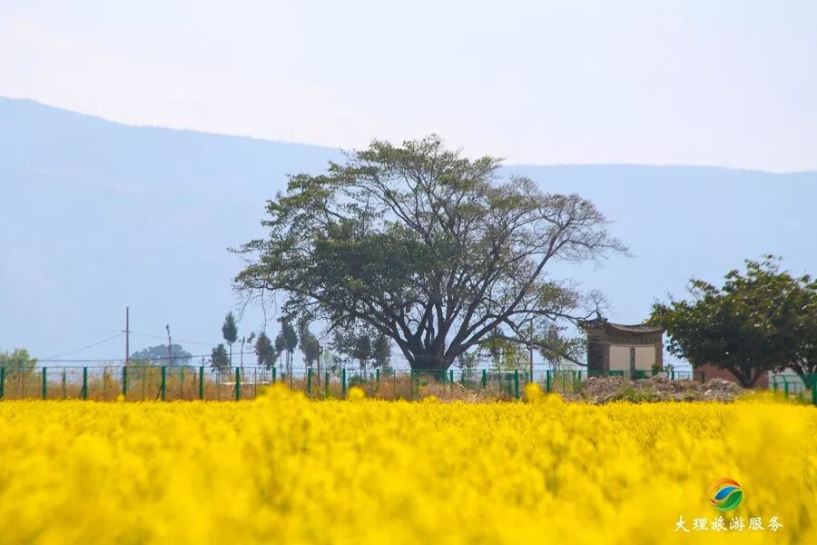 油菜花的盡頭的白族民居特有的青瓦白牆,這是不是你心裡最美的田園模樣。