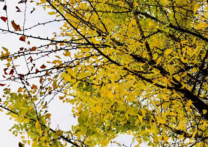西安的秋天,是過渡色的。在秋風中逐漸芬芳的秋,便是從這一抹黃中開始的,黃色、橘紅色最後是紅色、褐色,色彩明亮的讓人看一眼都覺得開心,從落葉的顏色,便看見了時間的痕跡。