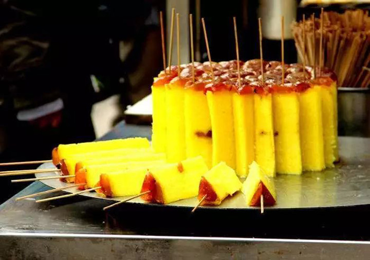 桂花糕顏值比較高,糯糯甜甜,再蘸點蜜汁,入口香甜回味,特別帶勁兒,要記得,桂花糕邊逛街邊吃是標配哦。