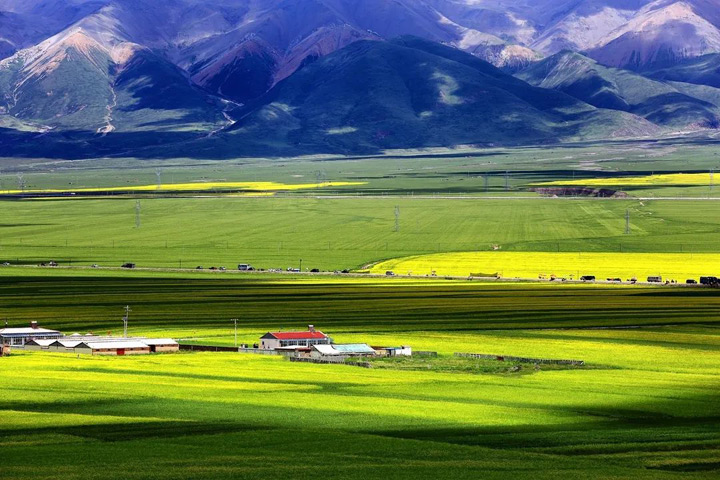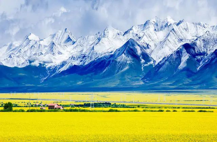 門源縣位於青藏高原的東北邊緣,地處青海北大門的必經之路,絲綢之路、甘青通衢在這裡融會貫通。作為青海最大的油菜種植區,這裡的油菜花綿延幾十公里。每年七月,整個門源便變成了一片金色的海洋,滿地都是花香味道。除了萬畝油菜花海,門源還有雪山連綿不斷,崗什卡雪峰寒氣逼人,在海拔4500公尺以上多有現代冰川。每到夕陽西下,晚霞漫天時,山頂晶瑩瑰麗,熠熠閃光,雪線以下是廣闊的草原和油菜花海,怡如一幅渾然天成的油畫。