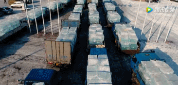 一塊塊晶瑩剔透的冰塊在冬日的暖陽下閃閃發光。到了採冰時節,松花江的冰塊被打撈、切割,運輸到重點街區和景區景點,一塊塊冰開始它們的“成名之旅”。