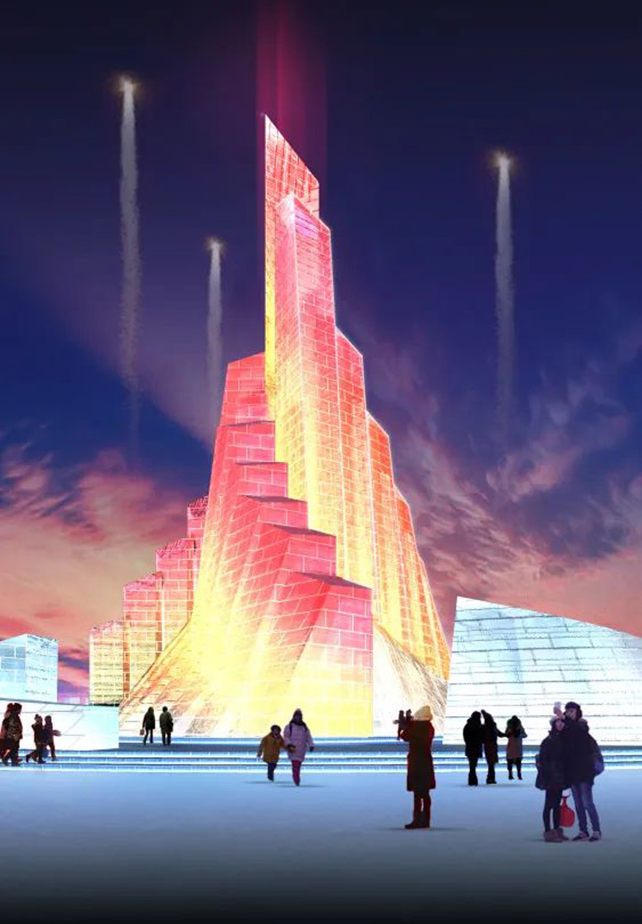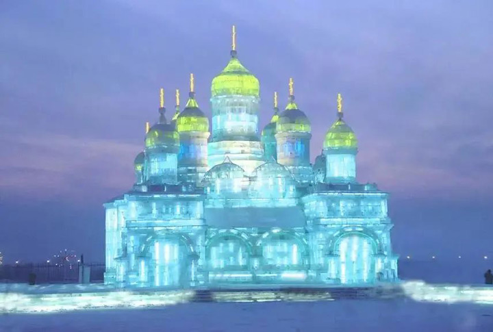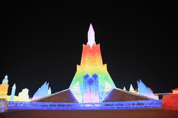 在藝術家們的雕刻之下,冰塊沒有了最初的普通模樣,煥然一新的姿態展示它們最美的樣子。精雕細琢而成的建築或是人物,都被賦予靈魂,在流光溢彩的冰雪王國裡,每一塊冰都是焦點。
