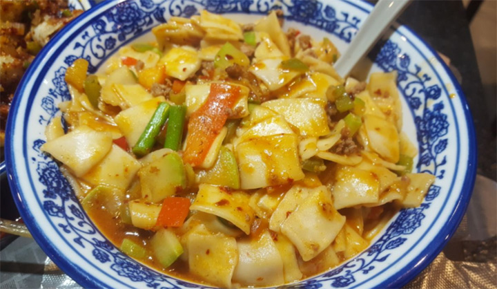 再加上肉丁或肉片、辣子等食材高溫翻炒