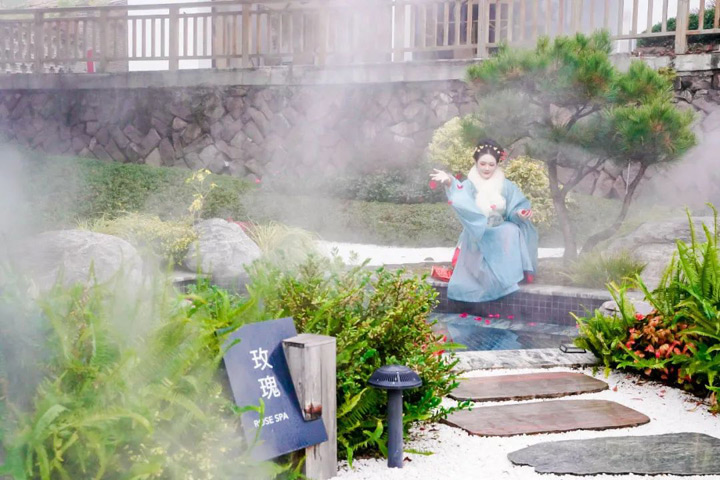 溫泉是酒店的金名片,它的特別之處在於溫泉水是罕見的醫療級偏矽酸含氟螢石礦天然溫泉,具有極高的美容養顏和抗衰老功效,被稱為“美人湯”。當你浸泡在熱氣䙚䙚的溫泉水中,有種如沐春風的幸福感。