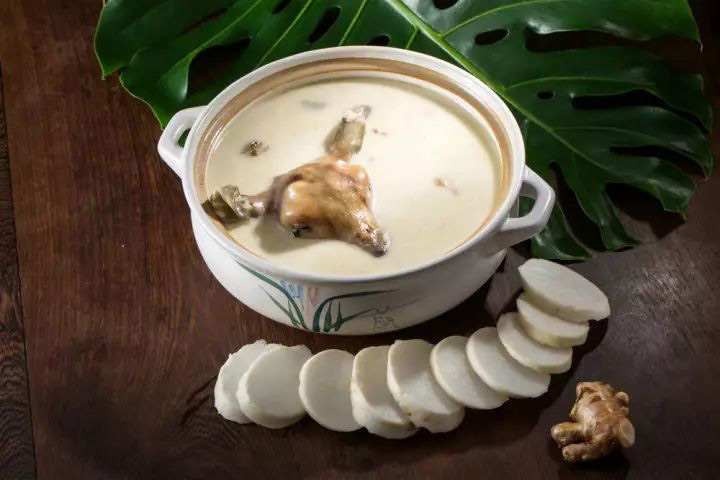 客家雞酒是客家的經典名菜,它性溫熱而祛寒濕,鮮潤濃香醇厚,並有開胃活血,補中益氣的功效。它甘甜鮮美,略帶淡淡酒香,令人回味無窮。