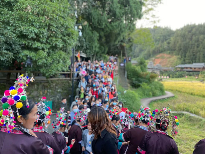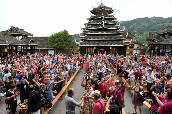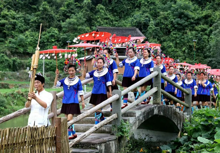 過年期間,各家各戶姓氏輪流過節,親朋好友都會集中前往,最後到鼓樓坪唱歌跳舞慶祝侗年。——程陽八寨景區