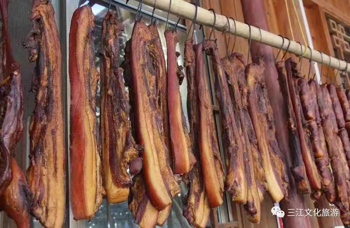體驗古城美食文化。一年歲之尾,一碗臘味香,過年最不可少就是臘味。丹洲臘味經歷過秋風的洗禮和柚子皮、甘蔗的薰陶下,臘味香味濃郁,吃起來味道醇香,肉質肥而不膩。
