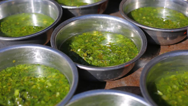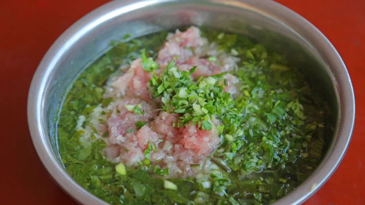 豬里脊肉取出肉筋後剁細放入水醃菜裡,加上香菜、花椒、辣椒、鹽巴、辣椒粉,再刮上一點香胡椒根(木薑子樹根),擠上半個酸橙汁拌勻,就是一碗酸辣爽口正宗的“紅生”。