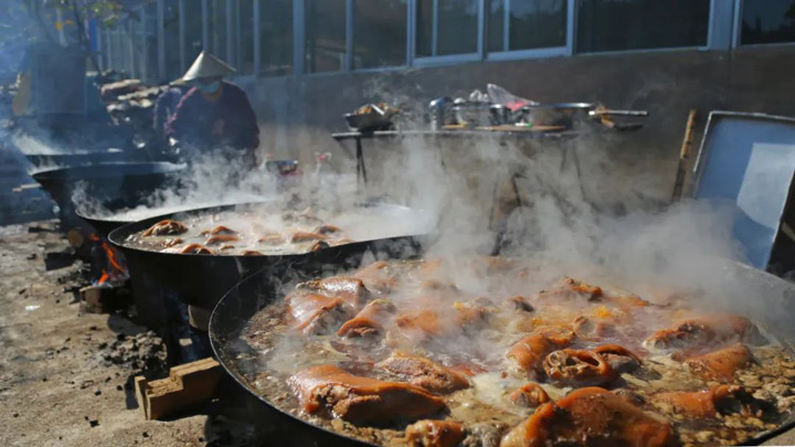 以前鄉村並不是家家都很富有,花費一年左右的時間喂一頭大肥豬再用美味慰藉辛苦一年勞作的人們,是對一年辛勤忙碌最好的犒賞。