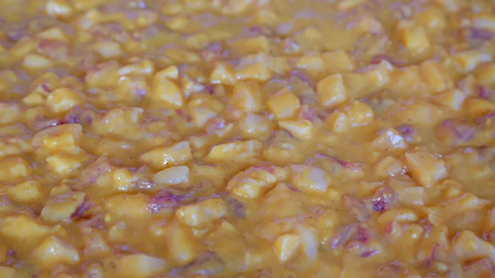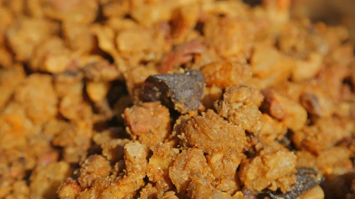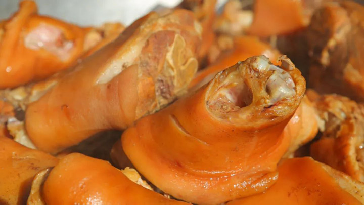 一般情況,作為年豬飯的豬都是不用飼料餵養,以玉米、南瓜、紅薯、菜葉等作為主食,精心調養,這樣飼養的豬精肉多,肥肉結實且吃起來香味濃而不油膩。