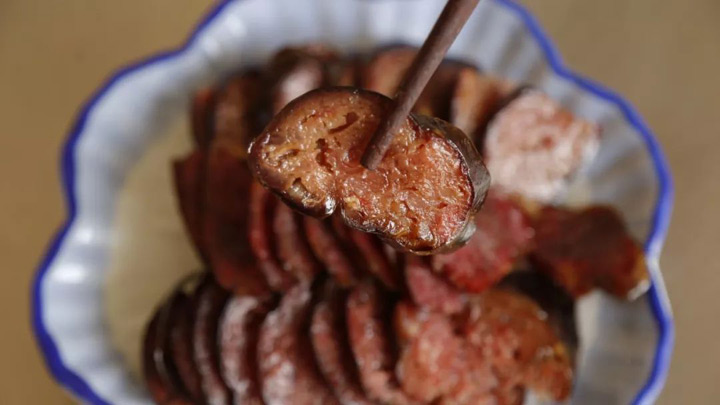 屋簷下掛滿的肉腸、豆腐腸和血腸,待到完全風乾再儲存起來,平時餐桌上又可以增加一道農家菜。