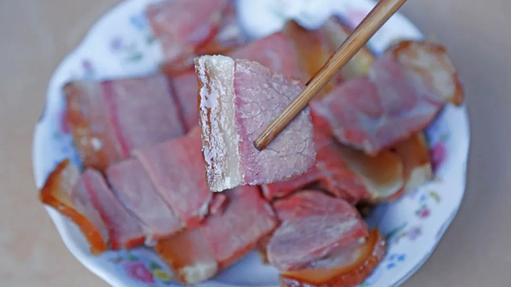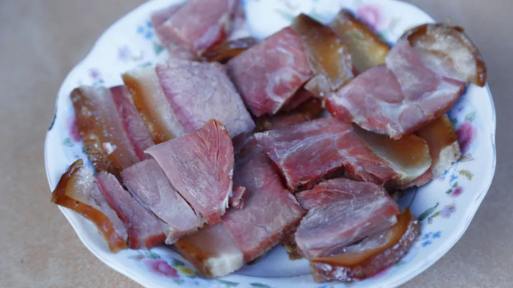 殺年豬後習慣把豬後腿留下醃製做成火腿,不僅是平時餐桌的一道美味,用來招待客人也是極佳。