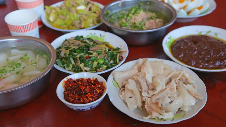 白肉片蘸著酸豬血的吃法大概也只有到施甸吃年豬飯的時候才會吃到。