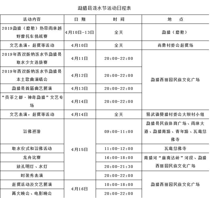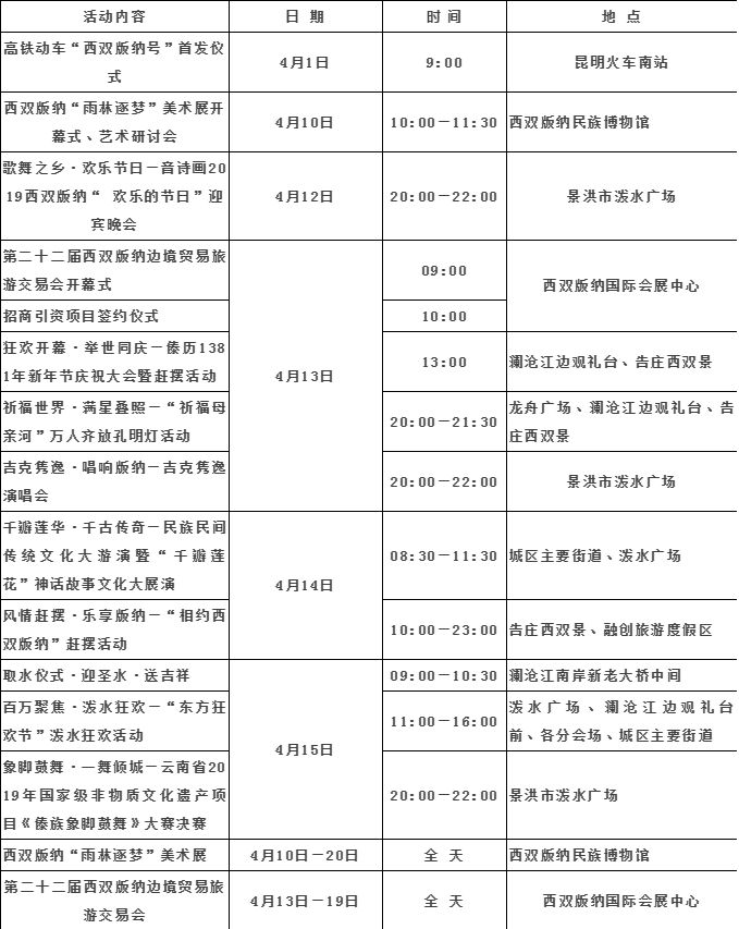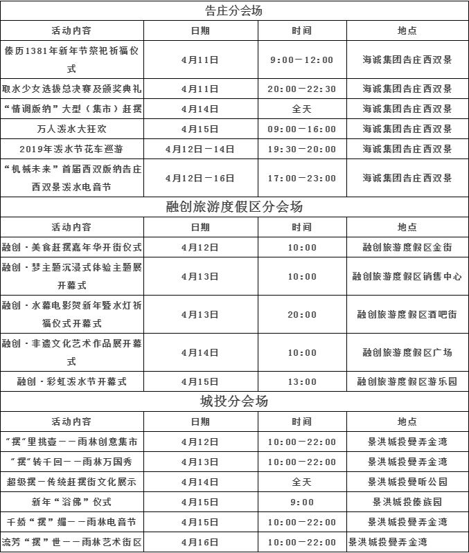 為大家貼心的奉上2019年西雙版納潑水節活動日程: