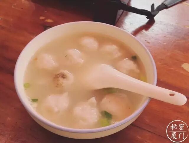 因為廈門靠海,所以在小吃店裡能經常看到魚丸湯。店家們自己買魚,自己剔骨取肉,自己打漿,自己包製,皮薄餡多,特別注意剛煮好的魚丸特別燙,著急的小編經常就被魚丸內的熱油滋到嘴。