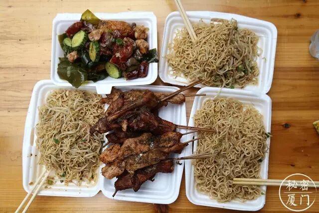 廈門的麻辣燙大多是炸煮結合,排放在外面的食材按自己喜好選擇,老闆將食材炸好後拌上特製的花生芝麻醬,最後一定要加上一份泡麵,濃香誘人。