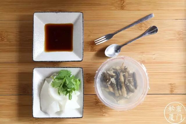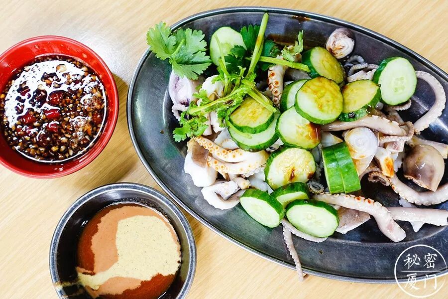 靠海吃海,廈門的章魚還是很新鮮的,吃起來口感爽脆。每份配有兩個醬汁,一種是醬油加蒜、辣椒混勻的,比較咸。另一種是芥末的,加了甜辣醬和花生醬。根據自己的喜好來選擇。