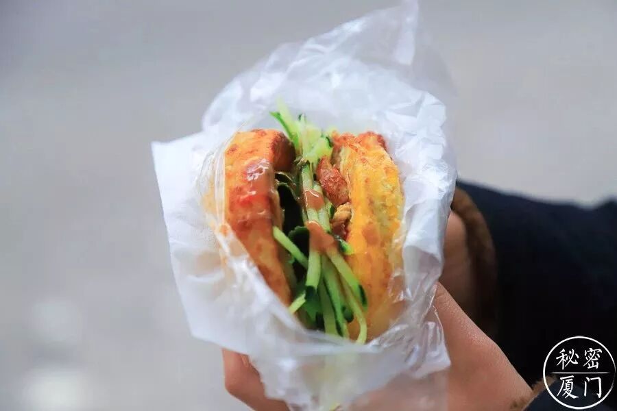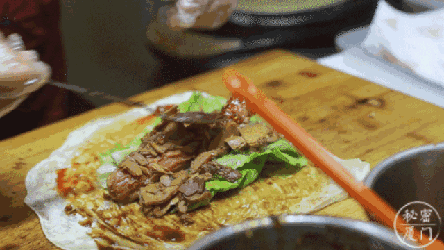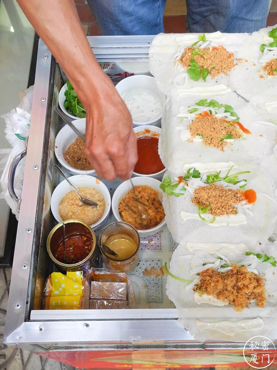 滷肉卷也是廈門的學校附近會經常出現的攤子,店家放上滷肉、青菜和特製的醬料,用熟練的手法很快就做完一卷,回家路上偶爾買上一份,邊走邊吃還是很舒服的。