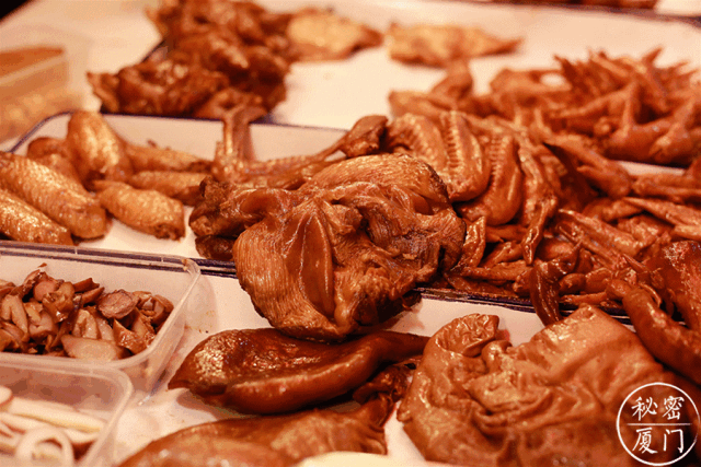 廈門的滷味主要還是偏甜口,小小攤位選擇很多樣,滷味攤的老闆一般都特別熱情,買完老闆都會配一包秘製的滷味醬汁,是下酒菜的好選擇。
