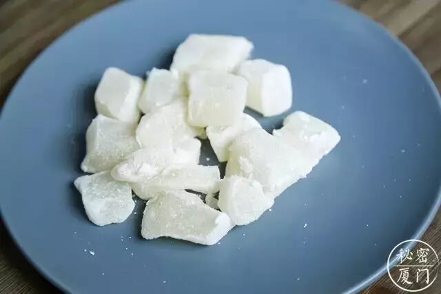 茯苓糕別名叫“復明糕”,曾經也是清朝宮廷的御用糕點。廈門的大多數茯苓糕都是流動攤販在賣的,不過現在想吃基本要靠運氣碰啦,街上已經越來越少看到茯苓糕的攤位了。