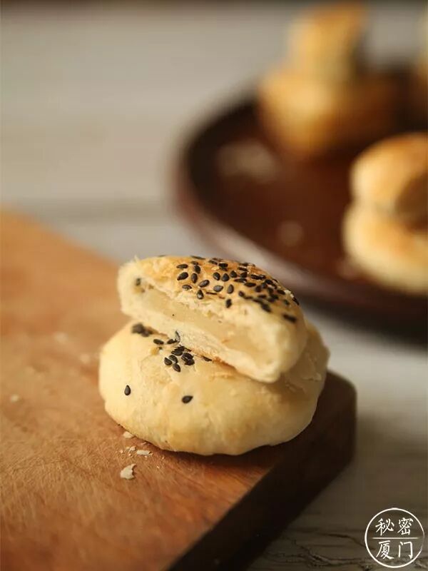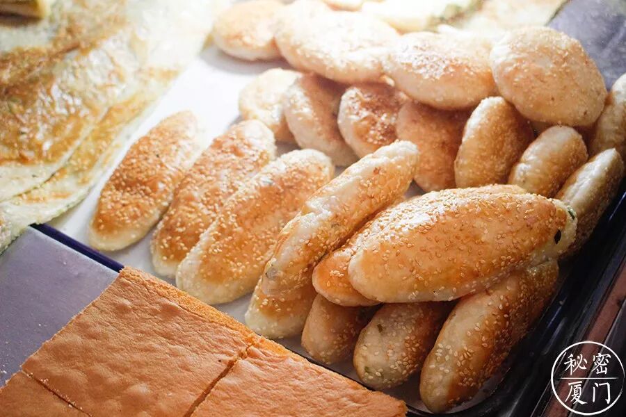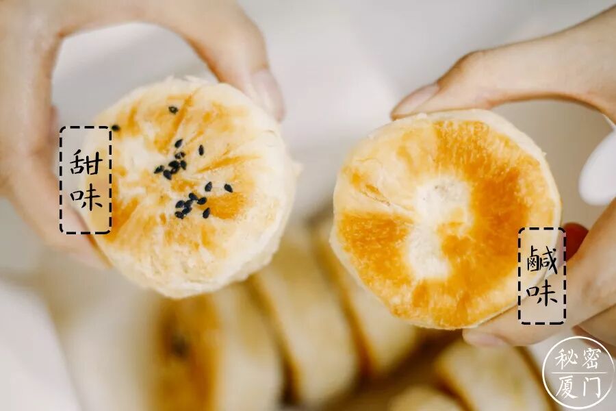 最早廈門吃的幾乎都是甜味的餅,隨著外地的燒餅傳進來,才慢慢被改良演化成為大家所熟悉的各類咸燒餅。現在市面上已經很難見到古早燒餅還有咖哩味和肉醬味,幾乎都只售賣貢糖味的。