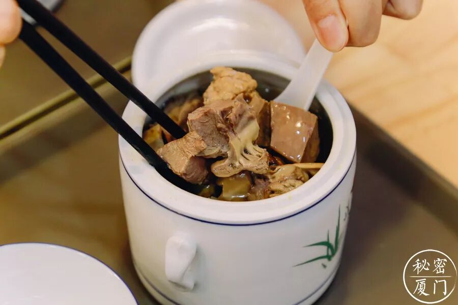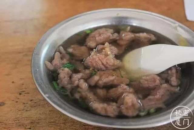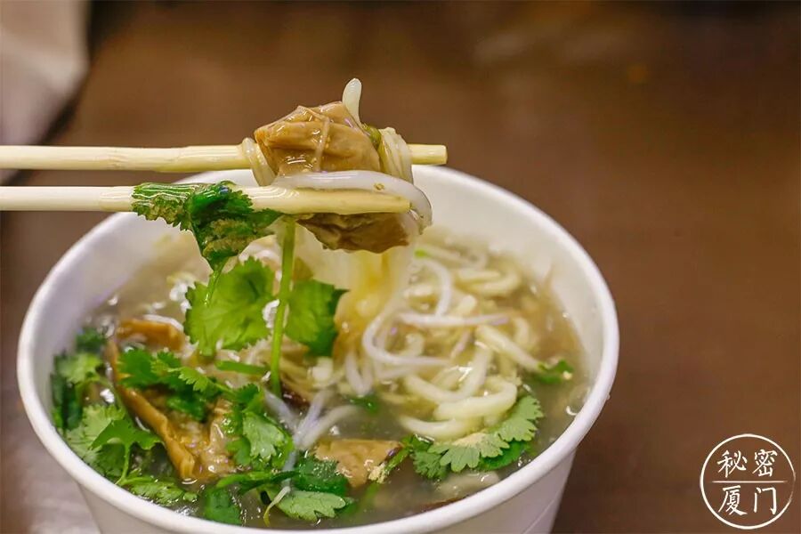 廈門較為出名扁食店便是賴厝埕扁食店了,他們家的扁食皮薄且Q,餡飽滿厚實,咬一口即可看到,湯由豬骨熬成,香醇濃郁,骨湯之中還加有冬菜,味道很特別。