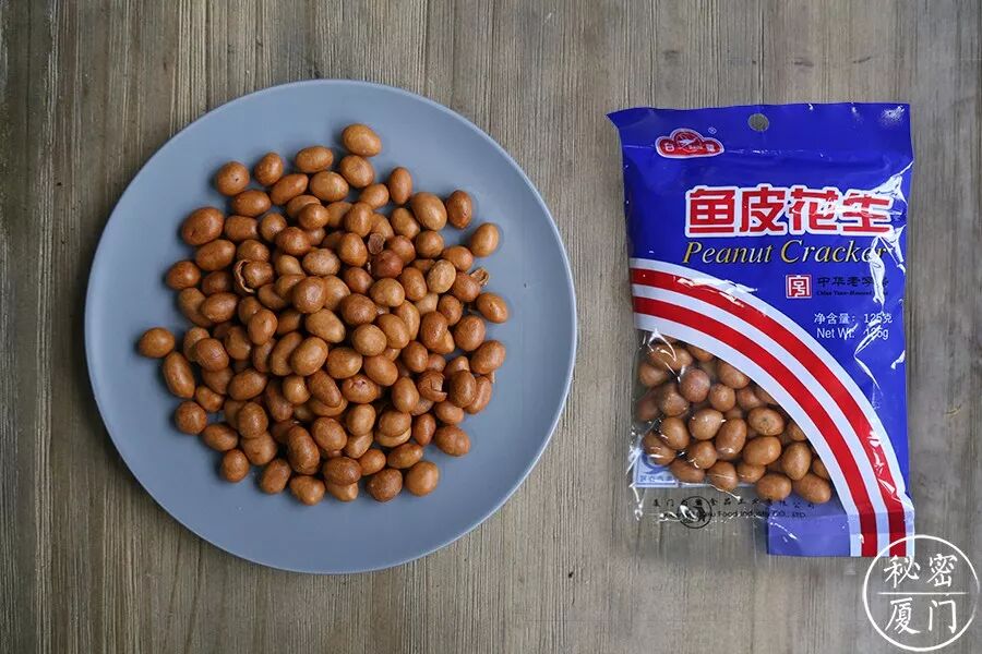 有50多年歷史的白鷺魚皮花生不僅是茶配,很多廈門人下酒的時候也會帶著它,皮酥酥鹹鹹的,很好味,一個會接著一個吃。