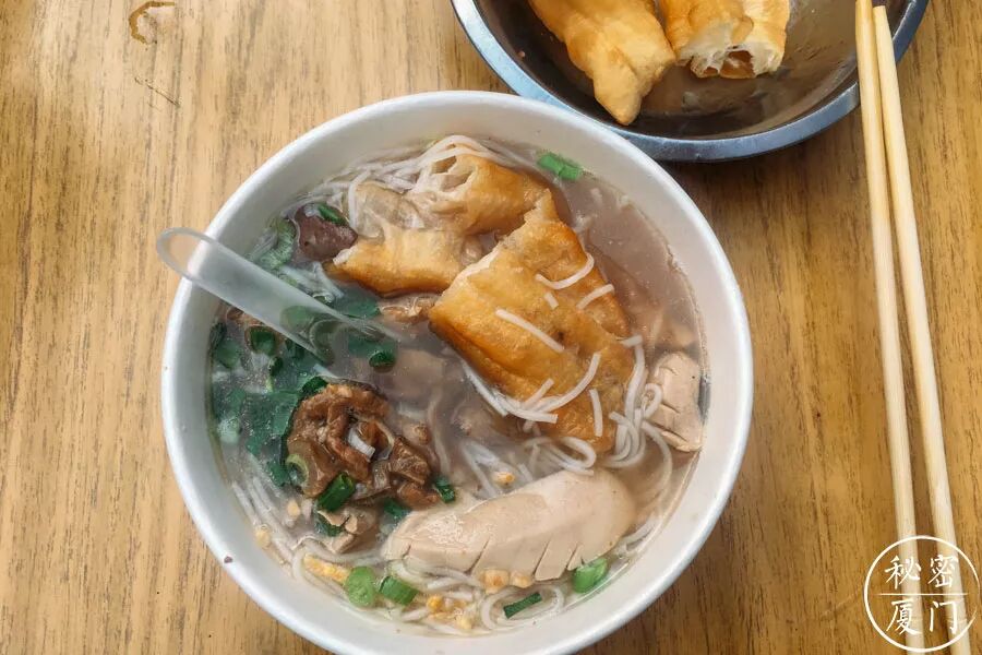 除了沙茶麵之外,蝦麵也算廈門的標誌性小吃。湯頭是由蝦仁和肉精心熬製而成的,蝦的全部鮮美味道都融進了湯中。