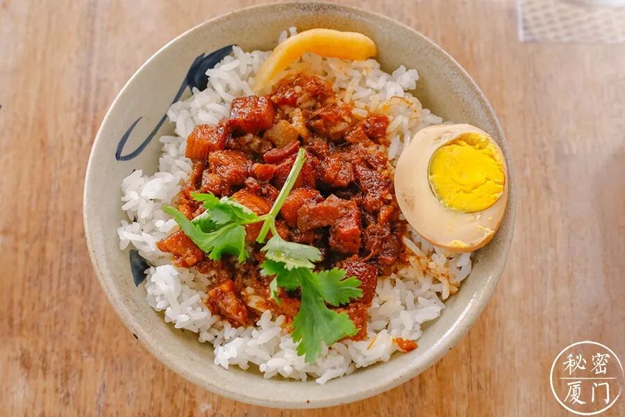 滷肉飯搭配半顆滷蛋,加上肉汁,米飯顆粒分明,只需幾口就能吃得一干二淨。如今廈門開了很多家新式閩南小吃店,讓工作的人們在外也能嚐到廈門味的家常料理。