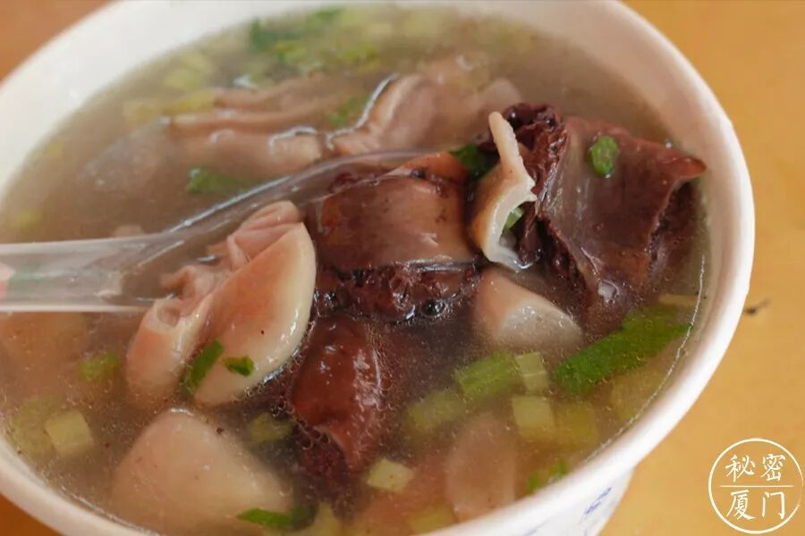 在許多閩南小吃店內都能發現豬心湯,復古的公雞碗,一盅湯的份量極大,給的肉料特別多,隨便挖一勺都是滿滿的肉。