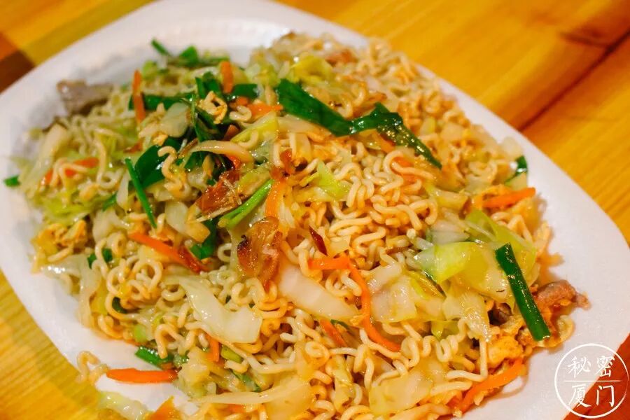 炒廈門泡麵是廈門的特色菜單,海蠣加上白菜和蔥段,最後只需加上一包廈門泡麵的調味包,一切都準備就緒,就差你品嚐了。