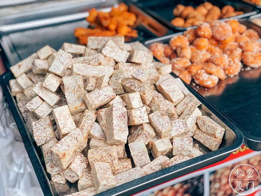 炸芋頭熱乎乎,外表酥脆,裡面鬆軟可口,簡直美味,有小時候的味道,在故宮路的老巷子看著老廈門人市井生活,品嚐一份炸芋頭,美哉。
