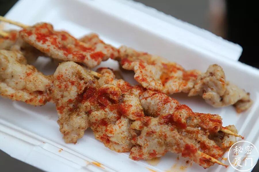 廈門人像中了里脊肉串的“毒”一樣,許多人排著隊搶著買它。肉質鮮嫩Q軟,特別多汁。調料上也一點都不馬虎,椒鹽和辣椒粉相合得很好,滲入肉的纖維裡更是香得要命。