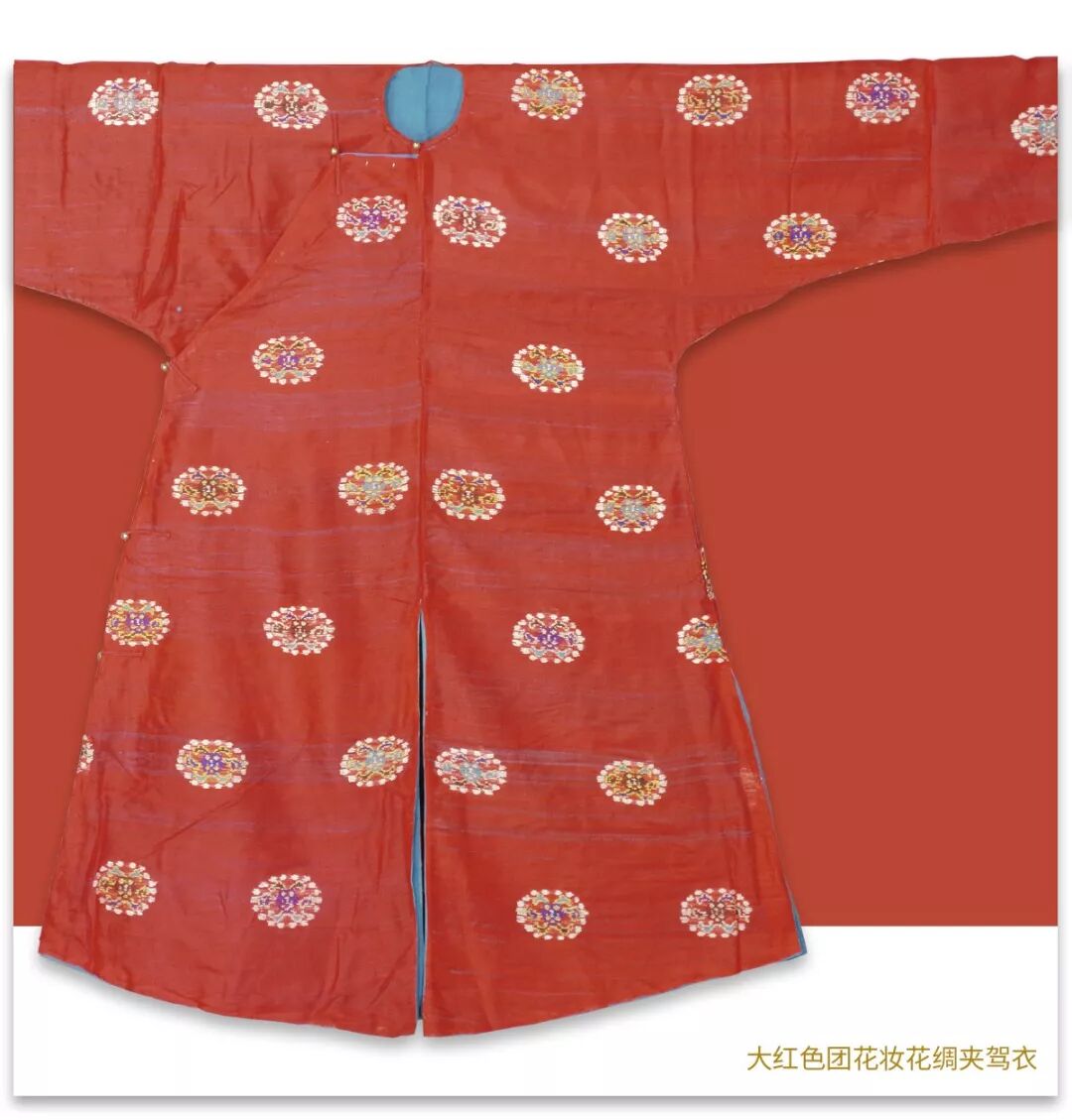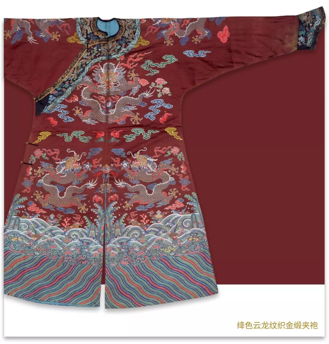 此類絳色袍大量為清乾隆朝遺存,突顯著乾隆帝在服色上的偏好與當時上行下效的服色流行風潮