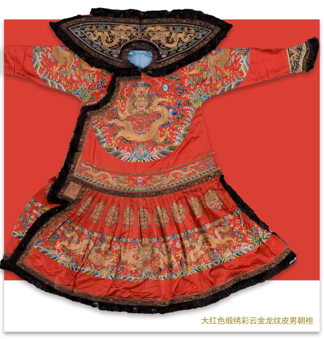 典制中雖明文“皇帝袞服,色用石青”,但實際衣物還是會體現君主的偏好。在大型吉禮場合,紅青褂與紫貂端罩真是精彩的搭配。