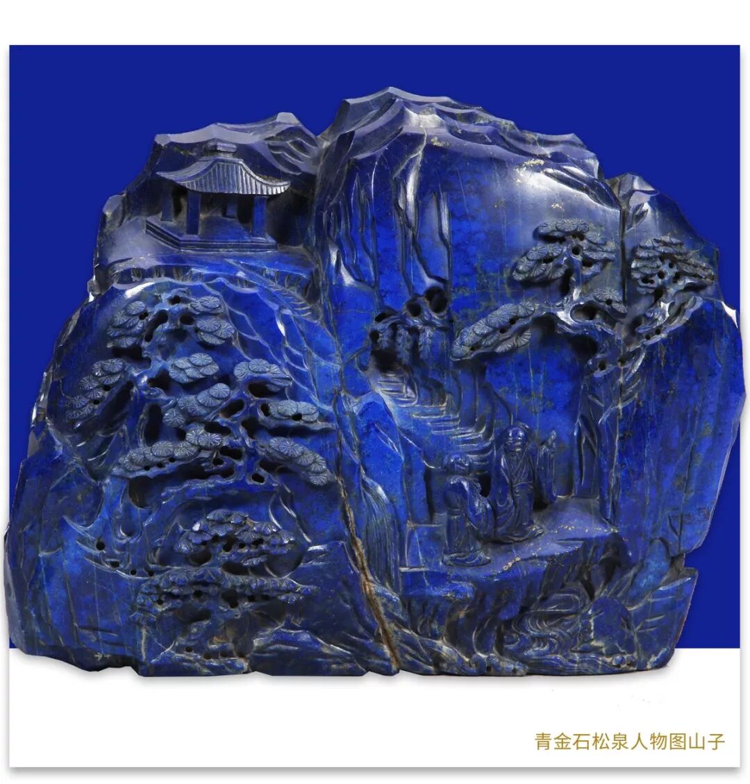 清代親王以下至文武官的吉服大概就是藍及石青色。清代品級頂戴,比顯赫的紅頂子次一級的就是藍頂子,用藍寶石、藍色涅玻璃或青金石。而青金石也是清宮中最常見的雕飾用料,遍見於宗教造像及法器、文房清供、室內陳設及各種器具、佩飾,特別是在清中期諸回部對中央朝貢關係穩定後,更有青金石大料貢入宮廷,可供乾隆皇帝打造“立體山水畫”山子。