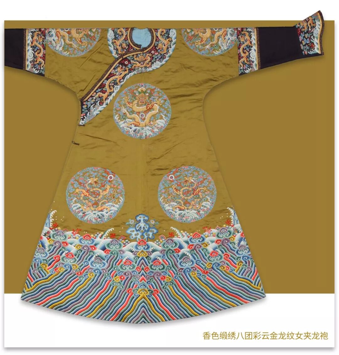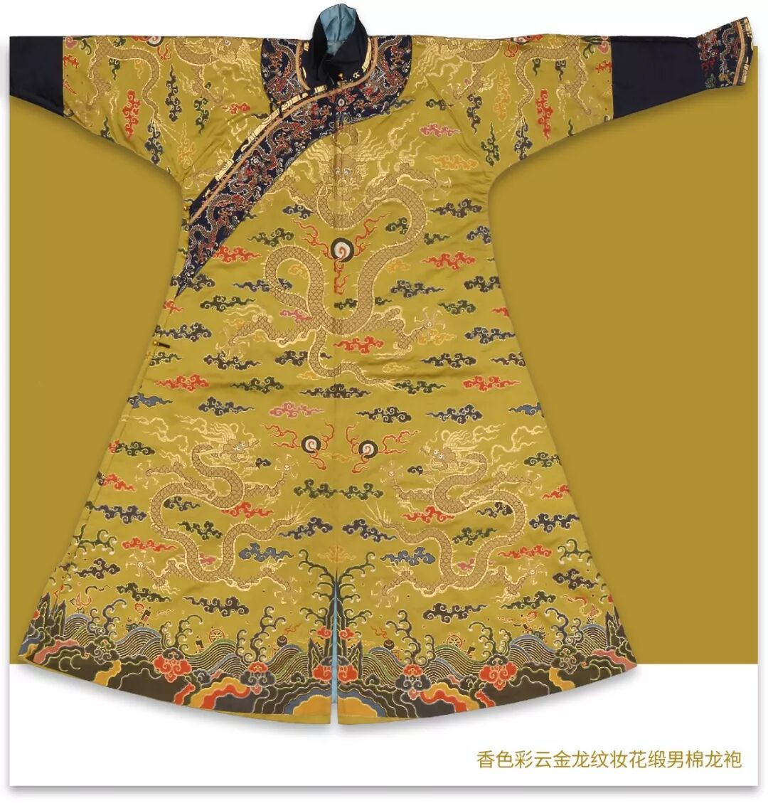 明黃之色名,在清代史料記載中最先出現在康熙朝,至雍正朝寫入冠服制度中,至乾隆朝中期,明黃色名在修訂會典時正式作為標準色名用於帝后服色上。帝王如日,明黃色正是升上中天的太陽色。皇帝與皇后,以及皇太后是明黃色的主人。特別是在重大典禮和節慶時,主人們就會沐浴在明黃的光芒中。