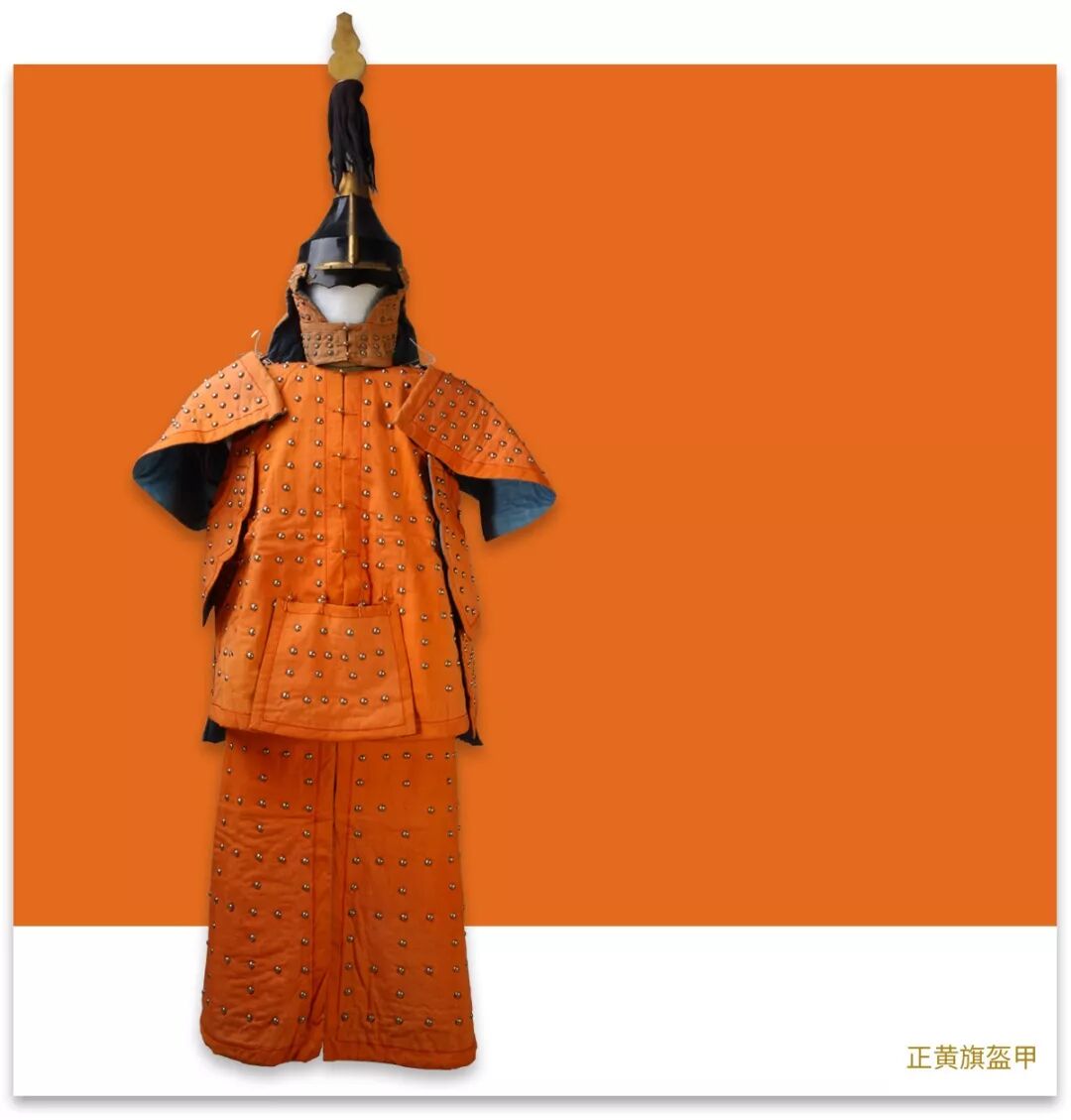 正黃和鑲黃二旗之黃實際是黃中帶紅的金黃色,雖是皇家近衛軍,衣色也要有別於皇帝的明黃。