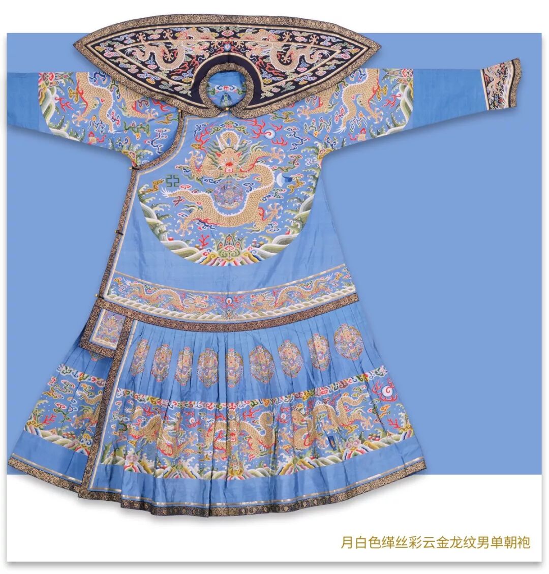 清代人們是如此喜歡藍色,有時還會將身上最重要的紋飾也“刷藍”。清代龍袍(王公大臣穿的自然是蟒袍)上最常見的龍紋裝飾有兩種:顯赫的金龍和謹抑的藍龍。