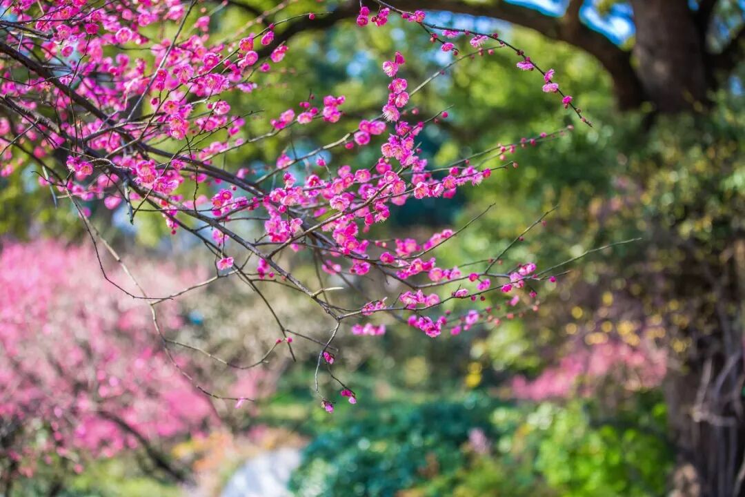 早春時節的放鶴亭,幾樹紅梅映照古壁蒼苔,其間古韻暗溢,梅香陣陣襲人。賞梅,逋老最得其韻:疏影橫斜水清淺,暗香浮動月黃昏。落日時分呼三兩知己,攜樽同往,待月亮漸漸升起,一邊小酌,一邊賞梅,此時最能得梅之真趣。稀疏的影兒,橫斜在清淺的水中,清幽的芬芳浮動在月光之下。這時,就連仙鶴都想飛落下來,偷偷地看一眼梅花。