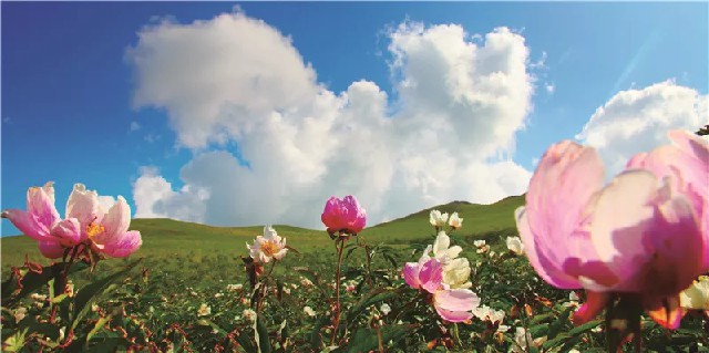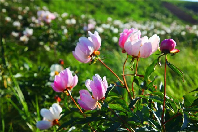 走進烏拉蓋草原,一旦到了芍藥花期,滿山滿谷,成百上千畝的地方,開滿芍藥,潔白的、淡粉的,一株挨著一株,一朵挨著一朵,映入你的眼中。