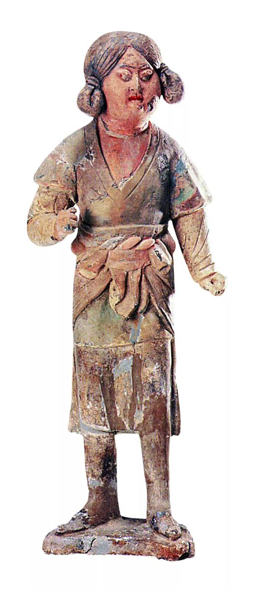 比如敦煌的壁畫中,菩薩也十分“fashion”,穿著短袖與熱褲,拗著閒適又愜意的造型。又比如唐代的風尚中十分偏愛“坎肩”,也就是半臂;上圖是彩繪牽馬僮俑,穿搭著半臂的是一位胡人。在“國際範兒”十足的唐代社會,源於胡風流行於漢地的半臂,對於各族男女,都是流行時尚。再比如“穿越”的“背帶褲”,或許也是哪一次古童裝的潮流先鋒。